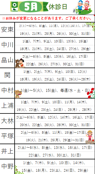 担当医の先生がお休みの場合でも、痛み等の方は別の先生で拝見させていただきます。